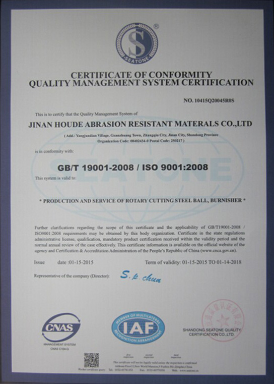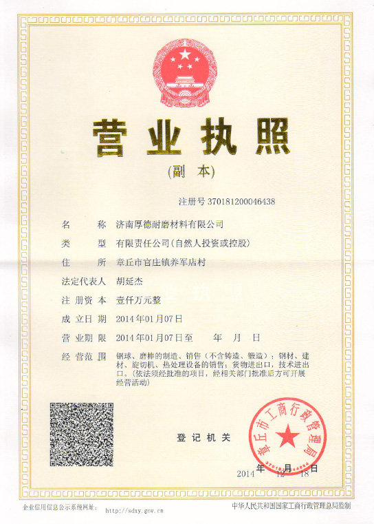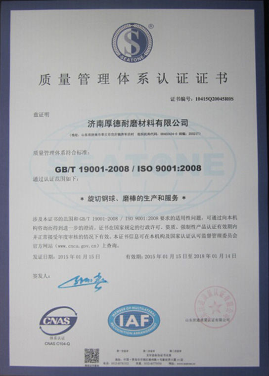 濟(jì)南厚德耐磨材料有限公司坐落于風(fēng)景秀麗的山東章丘,毗鄰309國(guó)道,是耐磨鋼棒、耐磨鋼球生產(chǎn)出口廠(chǎng)家之一。公司擁有先進(jìn)的生產(chǎn)設(shè)備,經(jīng)驗(yàn)豐富的技術(shù)人員,設(shè)計(jì)生產(chǎn)力年產(chǎn)6萬(wàn)噸,產(chǎn)品各項(xiàng)性能指標(biāo)均達(dá)到較高水平。公司已榮獲ISO9001-2000國(guó)際質(zhì)量體系認(rèn)證、IOS14001-2004國(guó)際環(huán)境體系認(rèn)證等榮譽(yù)。